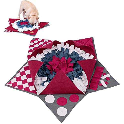 Materiale -- Il nostro snuffle mat per cani è realizzato in morbido pile polare di alta qualità + panno in feltro. Il sniffing mat è resistente e non tossico, può garantire la salute del tuo cane. Il sniffing tappeto per cani è bello nell'aspetto e facile da nascondere il cibo. È il miglior regalo per i cani da mangiare felicemente al chiuso e all'aperto. snuffle mat sniffing mat feeding mat