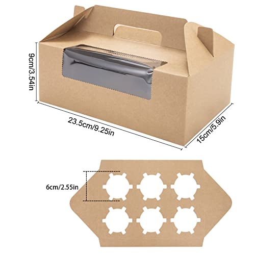Ayakizi Scatole per Cupcake Muffin con Finestra Trasparente e Inserti, Scatola per Torte, Dolcetti, Biscotti e Pasticcini, Regali Contenitori in Cartone per Alimenti, 12 Pezzi (Marron)