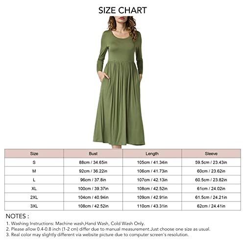 AYNEFY Abito Lungo a Maniche Lunghe Girocollo Abiti Lunghi Casual Semplici con Orlo Oscillante Abito Comodo con Tasche per Le Donne(L-OD Verde)