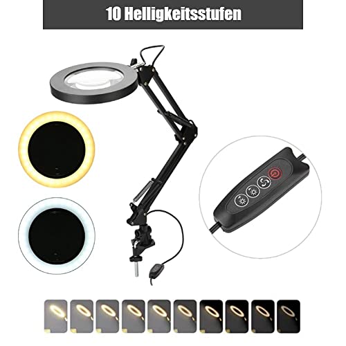 5 diottrie e 10 livelli di luminosità: la lampada con lente d'ingrandimento 5X con chip di protezione degli occhi a LED, a risparmio energetico e ad alta luminosità ha una lunga durata. Con un interruttore a pulsante facile da usare, è possibile regolare 10 livelli di luminosità, nonché le luci di riscaldamento e raffreddamento. Questa lampada cosmetica con lente d'ingrandimento può essere utilizzata per la cura della pelle, il tatuaggio, il lavoro quotidiano e lo studio