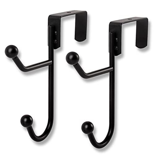 AYNKH Appendiabiti sopra la porta, 2 pezzi, nero doppio gancio appendiabiti per appendere cappotti, cappelli, accappatoi, asciugamani, adatto per porte spesse 3,8-4,7 cm