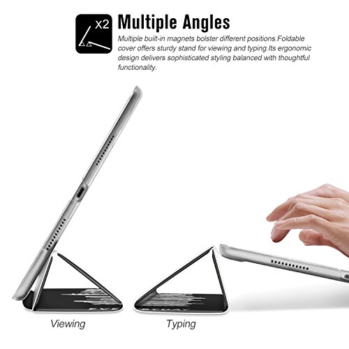 Usando la resistente pelle PU e il frontale interno in microfibra senza graffi, tocco più morbido e confortevole, e la cover posteriore traslucida trattata in modo speciale con finitura opaca mostrerà la forma perfetta e il logo del tuo iPad, proteggendo allo stesso tempo il tuo dispositivo.