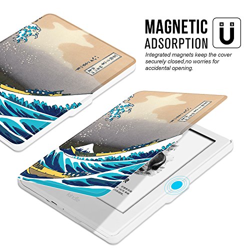 Ayotu Shell for Kindle(8th Generation, 2016 Release) Auto Wake and Sleep Smart Protective Cover,Case for Kindle(6" Display, NO Built-in Light),Painting Series White Shell K8-09 The Surfing in Kanagawa