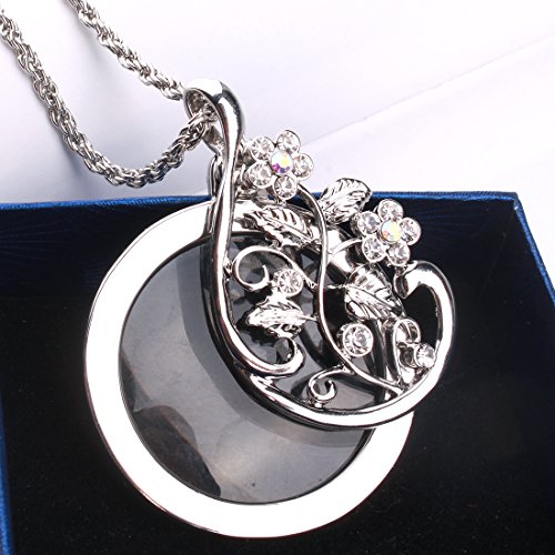 AYOUYA Collana Lunga con Ciondolo Lente d'Ingrandimento, Cristallo Artificiale, Lunghezza di 64 cm, Materiale Rame, Colore di Oro Bianco