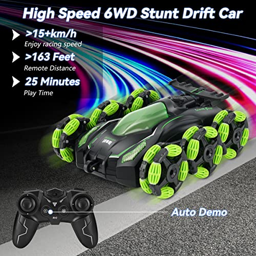 Aytop Macchina Telecomandata per Bambini, 6WD 2,4 GHz RC Stunt Car Macchina Radiocomandata RC 360° Off Road Anfibio Offroad Car Ricaricabile Giochi per Ragazzi Ragazze Compleanno Verde...