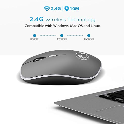Ayuly Mouse Wireless Mouse Ottico Mini Silenzioso con Clic Mute Mouse Senza Fili con Ricevitore Nano 2.4G 1600 DPI per Notebook, PC, Laptop, Computer, MacBook