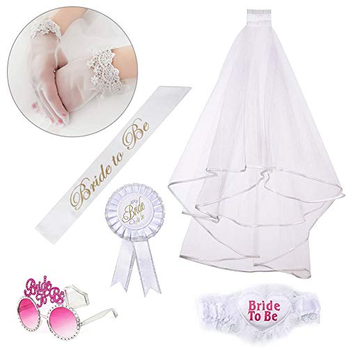 Pacchetto include:1 x velo bianco con il pettine, 1 x sposa di essere fascia, 1 x giarrettiera, 1 x rosette, 1 x Occhiali rosa, 1 x guanti Bianco e . Sii la sposa più bella e rendono la tua festa di matrimonio più interessante.