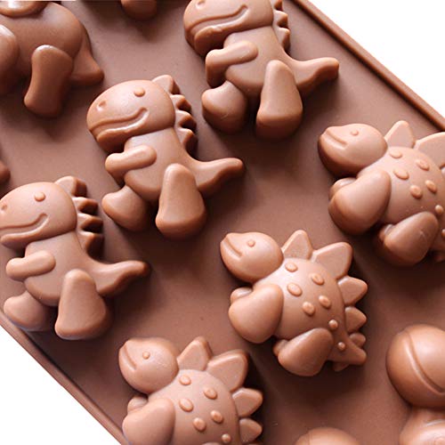 AYWFEY 4 stampi per cioccolatini a forma di dinosauro con 1 contagocce in plastica, 12 stampi in silicone antiaderenti per fai da te, pastelli, sapone, decorazioni per torte, gelatina e cubetti