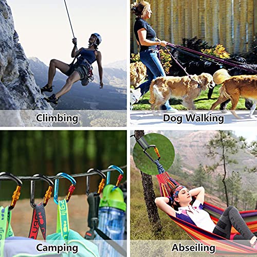 ⛰ 【Facile da Usare】 Design con fibbia a D, è possibile aprirlo ruotando il blocco a rotazione con una forza minore. Il moschettone ha un blocco a molla che consente di fissarlo rapidamente e saldamente a una varietà di punti di attacco.