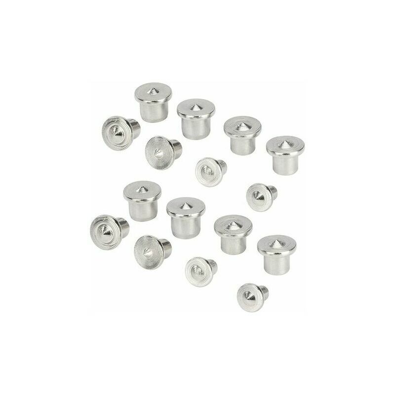 Dimensioni - Set di 16 pezzi. Il set è disponibile in quattro dimensioni: 6 mm, 8 mm, 10 mm, 12 mm. Include quattro centri di tassello di ogni dimensione. 【Materiale】 I centri di tassello sono realizzati in acciaio per eccellenti prestazioni di marcatura su materiali solidi. Quindi puoi usarli sia per legno duro che per legno tenero. Trattamento superficiale: cromatura (antiruggine e bella) 【Durevole】Resistente all'usura, resistente alla corrosione, necessario per la falegnameria, molto facile da conservare e mantenere. 【Metodo 】 Praticare semplicemente i fori, inserire i centri dei tasselli e premere il giunto insieme. I punti al centro delle borchie segnano accuratamente le posizioni dei fori sull'altro membro. 【Applicazione】 Due piastre di collegamento corrispondono alla posizione del centro dei fori delle piastre e fungono da supporto per la vernice .