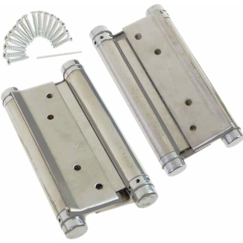 4'' (100 mm) 1 paio di cerniere per porte a molla a doppia azione con viti Materiale in acciaio inossidabile di alta qualità, superficie spazzolata, compatto e durevole Utilizzare per la porta il cui spessore è 30mm-35mm, funzione di apertura bidirezionale Forza della molla regolabile, fornisce la velocità di chiusura desiderata per una varietà di applicazioni di porte a battente Ampiamente usato per porte a battente, salotti, caffè, pub, porte a battente da giardino, apertura a due vie, ecc.