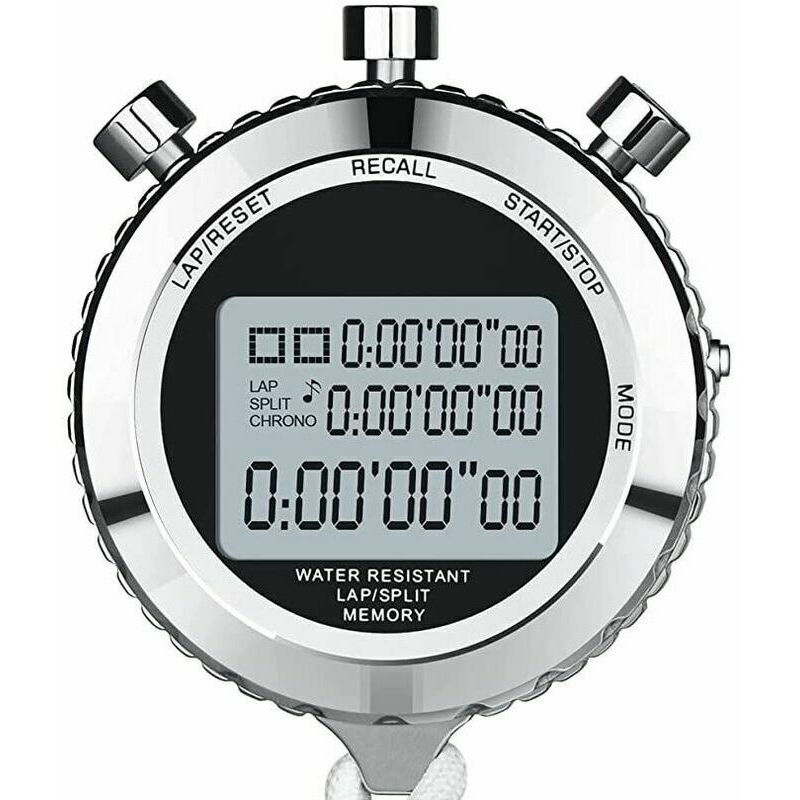Caratteristiche: Funzione silenziosa senza "BEEP" - Cronometro Tvorvik con funzionamento silenzioso, facile cambiare la modalità tra silenzioso e normale, non più 'BEEP', adatto per test, esami, esperimenti, discorso, classe e qualsiasi occasione silenziosa. Metallo di alta qualità cronometro digitale - Realizzato in acciaio inossidabile, resistente, ampio display con display a tre righe, può leggere chiaramente il numero. Con cordino, piccolo volume, facile da trasportare, il cronometro include un cordino, puoi tenerlo in mano o intorno al collo./100 secondi, 100 lap memory. La registrazione può leggere il segmento più veloce (FS), più lento (SL) e medio (AV) e i segmenti temporali. Perfetto per maratona, allenatore, arbitro, ecc. Funzione conto alla rovescia - Il conto alla rovescia massimo fino a 9:59:59, molto utile per il riposo fitness, facile da usare Configura questa funzione, il pacchetto include un utente manuale in 2 lingue (inglese e tedesco). Cronometro multifunzionale