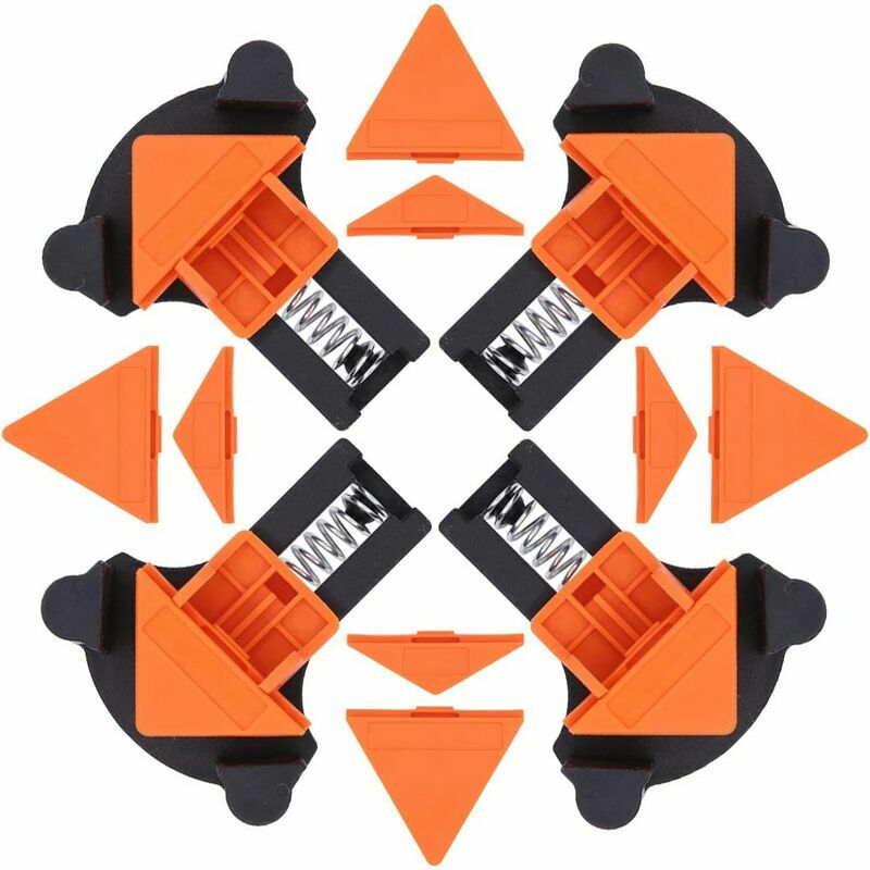 Angolo regolabile: adatto per assi di legno con spessore di 5-22 mm, angoli di 60/90/120 gradi e giunti a T, anche per collegare due assi con spessore diverso. Funzionamento semplice: I 4 morsetti angolari possono essere aperti con una mano e l'altra mano può scegliere e posizionare liberamente il pezzo, che può fissare rapidamente e facilmente la tavola e il telaio in posizione. Funzionamento efficiente: il la clip di fissaggio multi-angolo può aiutarti a fissare rapidamente e facilmente la tavola e il telaio alla ghiera di carpenteria, risparmiando manodopera e manodopera. Ampia applicazione: ampiamente utilizzata per la lavorazione del legno, la saldatura, la perforazione, l'ebanisteria, scatole quadrate, assemblaggio di riparazione di mobili, assemblaggio di scatole di legno, progetti di artigianato in legno, rinforzo di cornici per foto ecc. Contenuto: 4 morsetti ad angolo retto con 4 angoli a 60 gradi, 4 Angoli di 90 gradi, 4 angoli di 120 gradi. Un set copre le tue esigenze