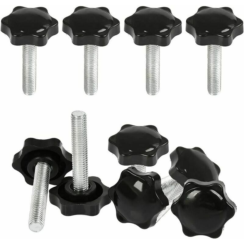 Dimensione M8 diametro testa filettatura interna: 32 mm, diametro filettatura: 8 mm, lunghezza vite: 40 mm. . Materiale Il set di viti per tela è realizzato in materiale PP e ferro elettrolitico. La superficie del dado è zincata, che non solo è resistente all'usura, alla corrosione e alle alte temperature, ma non arrugginisce e ha una lunga durata. . Design a forma di stellaViti con dado a forma di stella, facili da fissare a mano, senza l'utilizzo di altri strumenti. . Facile da sostituire Il supporto del dado allentato, rotto o mancante può essere sostituito con il controdado della maniglia a nastro. . Ampia applicazioneLe manopole del morsetto filettato M8 x 40 mm sono adatte per la maggior parte delle macchine utensili, ad esempio strumenti ed elettrodomestici domestici, alimentari e industriali. .