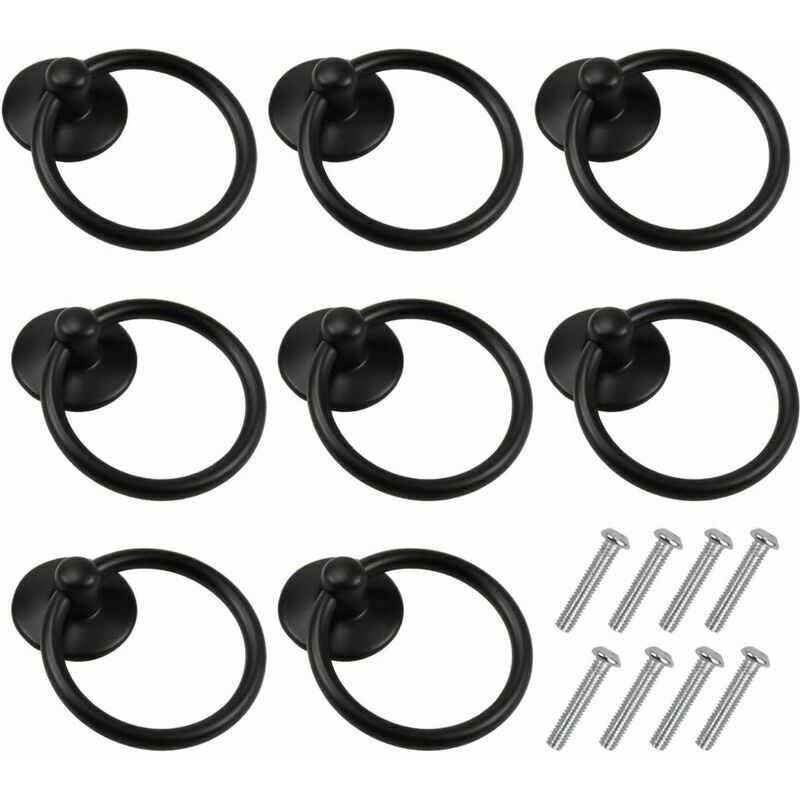 La confezione include - : 8 pezzi di anelli per cassetti (44 x 54 mm) nel set, forniti con viti da 27 mm (lunghezza). Dimensioni adeguate per la maggior parte dei cassetti, armadi, cassettiere, ante di armadi in casa, ufficio e cucina. 【4 diversi colori】: Disponibile in 4 colori metallizzati: oro, bronzo, argento e nero. Queste maniglie per cassetti si abbinano perfettamente allo stile della tua casa, ai mobili e ad altri pomelli per mobili nella maggior parte dei colori. 【Sicuro da usare】: le maniglie ad anello per mobili sono leggere e facili da tirare. Gli anelli della maniglia sono naturalmente attaccati alla superficie del mobile e non sporgono. Risparmia spazio nella tua stanza e riduce i potenziali rischi per la sicurezza. 【Decorazione retrò】: questi anelli rotondi sono semplici e generosi nello stile e di bel colore, senza alcun design ridondante, non saranno mai fuori moda. Il maniglione vintage è il partner perfetto per tutti i tipi di mobili, come comodini, mensole, casse di