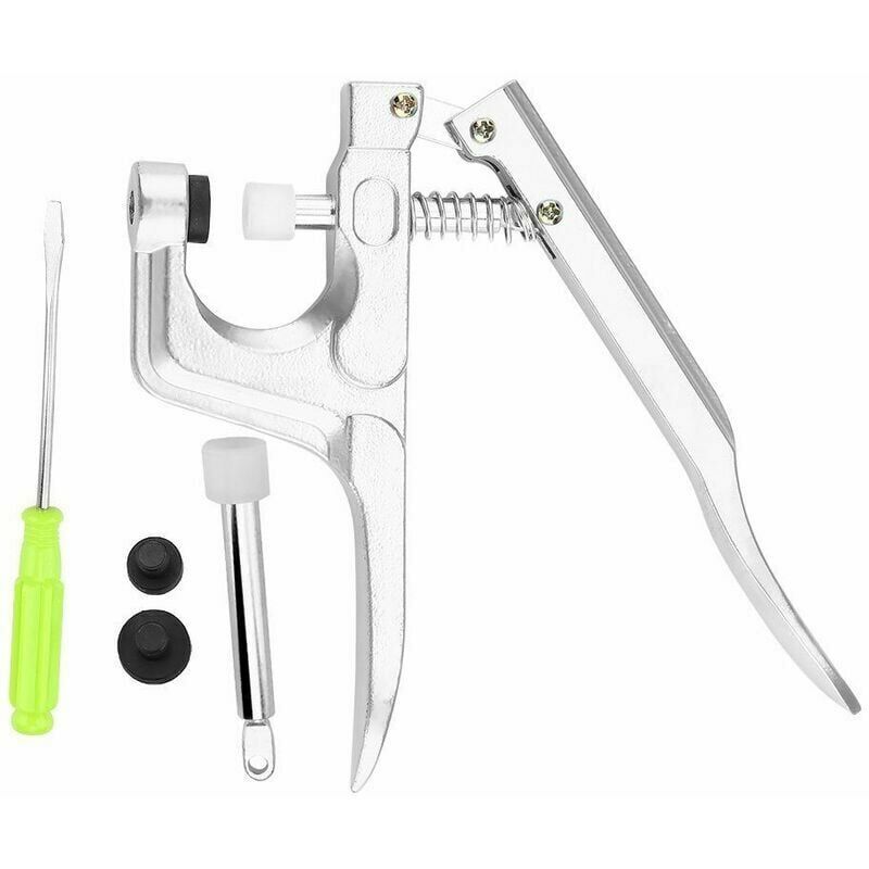 Pinze per bottoniLe pinze per bottoni sono per bottoni di diverse dimensioni, adatte per T3, T5, T8. [Buon aiuto] Le pinze a baionetta sono un valido aiuto per la manutenzione dell'abbigliamento e i negozi di abbigliamento. Facile da usare Sono molto facili da installare e facili da apri/chiudi sul tuo prodotto finito. Puoi installare fascette di plastica in pochi secondi.ApplicazioneAdatto per artigianato, progetti di cucito, portafogli, grembiuli, trapunte, vestiti per bambini, pannolini, bavaglini, impermeabili, ecc.MaterialeRealizzato in metallo di alta qualità, robusto e durevole.Descrizione: è semplice, portatile e facile usare. Un set per uso professionale e domestico, un valido aiuto per la manutenzione dell'abbigliamento e i negozi di abbigliamento. Le pinze a scatto sono realizzate in plastica resistente all'usura e gli strumenti a pinza sono realizzati in acciaio inossidabile, che sono resistenti e durevoli per un uso a lungo termine e sono il perfetto sostituto antiruggine