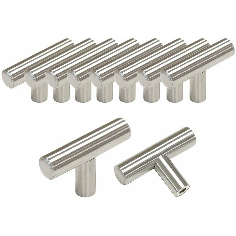Tappeto:: acciaio inossidabile T: cavo Diametro: 12 mm Lunghezza: 50 mm * Altezza: 32 mm Distanza tra i tr: foro singolo< br />Confezione da 10 con viti di fissaggio da 25 mm Adatto a diversi stili di armadi, credenze, cassettiere e credenze.