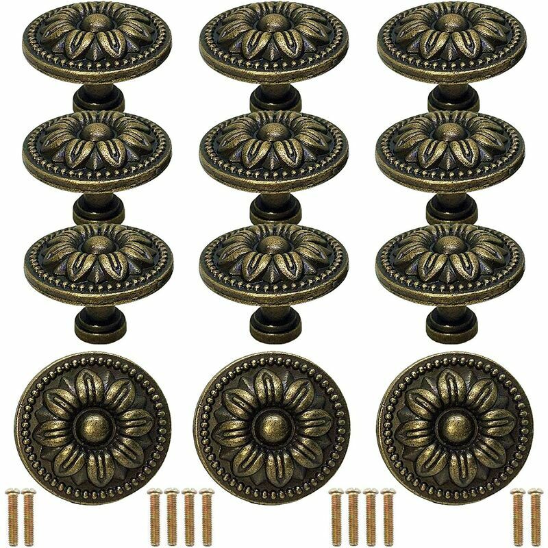 Ogni pomello viene fornito con una vite di fissaggio. Decorazione e ristrutturazione di mobili. 【Materiale di alta qualità】: lega di zinco con buona resistenza all'usura. Le maniglie dei mobili sono progettate meticolosamente, la manopola è liscia, comoda e perfetta. 【Sicuro】: superficie liscia senza bordi e angoli, molto sicura per i bambini, aspetto breve, la manopola e la maniglia della porta dell'armadio, forma rotonda, forma un bellissimo motivo floreale, molto semplice, forte, delicato e pratico. 【Facile da installare】: ogni maniglia è dotata di viti che possono essere facilmente installate utilizzando un piccolo gadget domestico.Perfettamente aggiunto a qualsiasi cucina, armadio, cassetto della scrivania, armadio, porta dell'armadio, cassetto dell'armadio, scaffale, ecc. Puoi aggiungere questa manopola retrò alla tua casa per decorare la tua casa e aggiungere un tocco di bellezza classica alla tua casa. Caratteristiche: -12