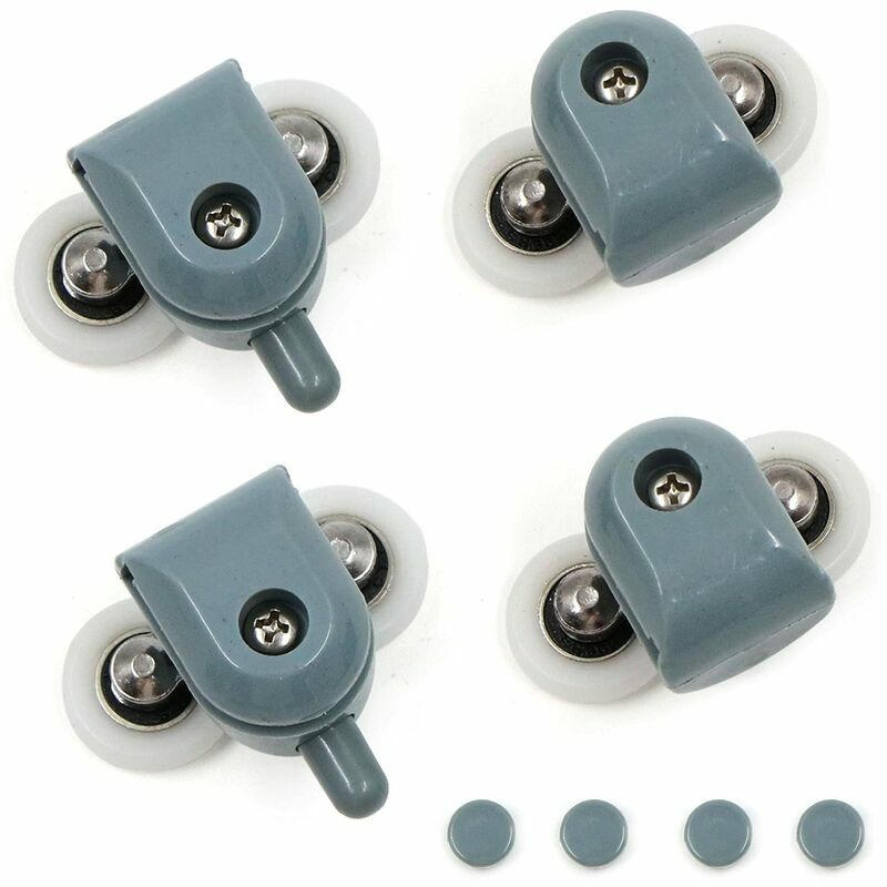 Materiale - Il rullo della porta della doccia è realizzato in lega di zinco e materiale ABS. È robusto e durevole, stabile nella qualità e ha una lunga durata. Quantità: 1 set di 4 rulli per doppia porta della doccia (2 superiori e 2 inferiori). Una pratica ferramenta per la porta scorrevole della doccia. Durante il giorno e la notte, può ridurre efficacemente il rumore che si verifica quando la porta è chiusa. 【Dimensioni】Diametro ruota: 25 mm;