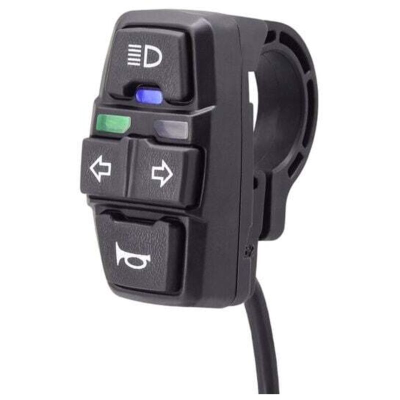 Tipo: interruttore luci auto Scelta 1: interruttore con clacson e pulsante luce Scelta 2: interruttore con clacson e pulsante indicatori di direzione Lunghezza cavo: 1,5 m Adatto per manubrio: 22,5 mm il colore nero