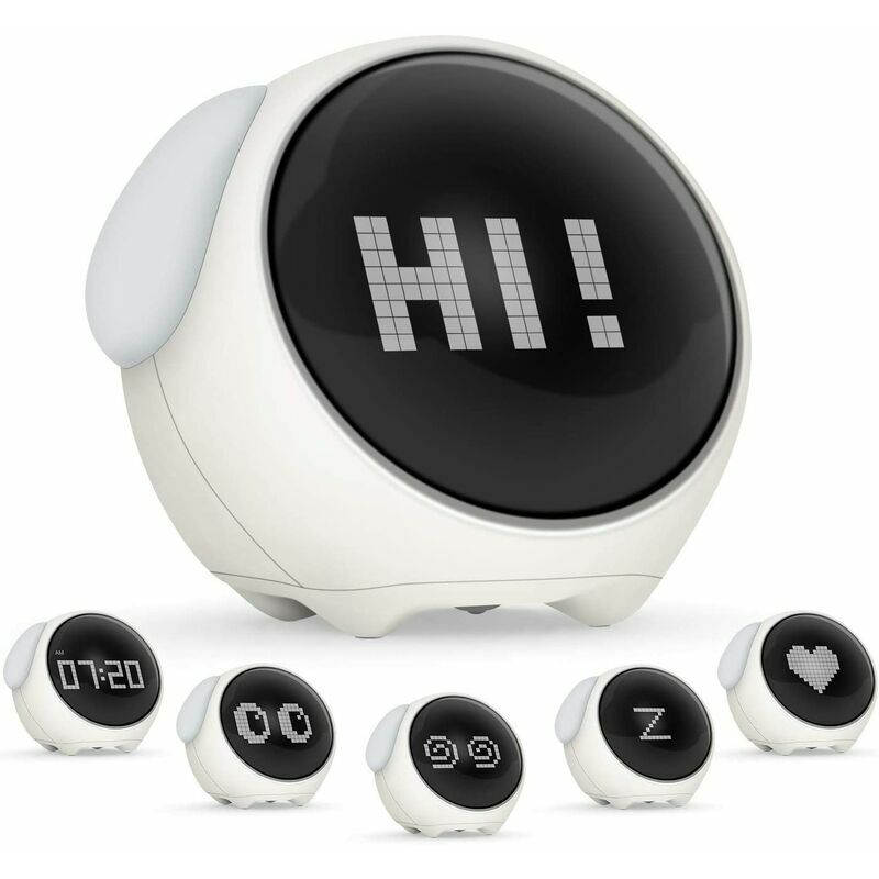 Simpatica sveglia digitale con emoticon: può essere utilizzata come orologio, sveglia e luce notturna. Le sveglie si comportano in modo diverso in scenari diversi. Entrambe le orecchie sono luci notturne, che possono essere gradualmente oscurate e accese tramite comandi vocali, batteria al litio di grande capacità e lunga durata, che può essere caricata tramite cavo USB Funzione snooze: dopo che la sveglia suona, scuoti la sveglia per entrare in modalità snooze, l'espressione snooze si illumina e puoi ottenere 5 minuti di pisolino. Sostituzione del ciclo infinito, premi il pulsante in alto per disattivare l'allarme del giorno Visualizzazione dell'ora e della temperatura: l'ora e la temperatura possono essere visualizzate sullo schermo. Puoi impostare il formato dell'ora (12/24 ore o AM/PM) e la temperatura in base alle tue esigenze. Luce notturna: la sveglia digitale è anche una luce notturna, che può accompagnarti a dormire. Nessuno spreco di energia sarà causato. REGALO PER BAMBINI