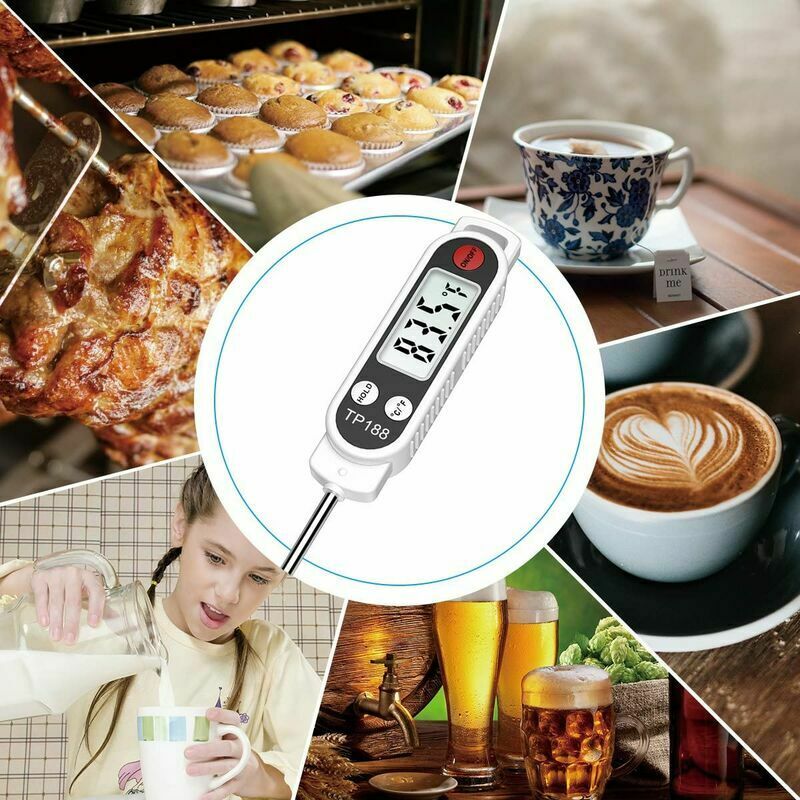 Lettura istantanea: termometro da cucina L'ampio schermo LCD mostra una lettura istantanea accurata in circa 6 secondi. Può leggere facilmente ed evitare la cottura eccessiva. Questo termometro da cucina è perfetto per grigliare, liquidi, cucinare e barbecue. Alta qualità: termometro da cucina con sonda sensore in acciaio inossidabile 304, alta precisione, molto sicuro e non presenta alcun rischio per la salute. Perfetto per carne, liquidi, alimenti, ecc. Intervallo di temperatura: -50°C ~ +300°C (-58°F ~ +572°F) [±1°C( 1,8°F) ]. Risoluzione: 0,1°C /°F. Precisione: ± 1°C /°F. Puoi scegliere la temperatura Fahrenheit o Celsius sullo schermo. Sonda lunga: il termometro da cucina è progettato con una sonda in acciaio inossidabile 4.7 extra lunga. Puoi utilizzare due modi per misurare, protegge dalle ustioni delle mani durante la misurazione. Risparmio energetico: termometro da cucina alimentato dalla batteria a bottone LR44 / AG13 (inclusa). Spegnimento automatico dopo 10 minuti di non