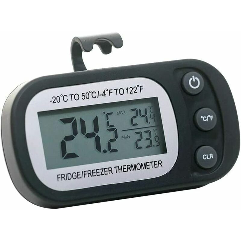 Ampio intervallo di temperatura di misurazione, ±2°F (±1°C) - : la temperatura può variare ed essere precisa da -20°C a 50°C (da -4°F a 122°F). Consente di utilizzarlo in frigorifero, congelatore. Può anche essere utilizzato come termometro generico per uso interno o esterno. 【Funzionamento semplice e intelligente】: termometro elettronico semplice con solo 3 pulsanti. Basta premere il pulsante on/off per accendere/spegnere il termometro. Premere il pulsante °C / °F per selezionare Celsius o Fahrenheit. Dopo aver riavviato il termometro, la temperatura massima/minima verrà ripristinata. 【Ampio display LCD】: questo termometro da frigorifero ha un display LCD elettronico di facile lettura, le informazioni sullo schermo possono indicarci la temperatura più alta, più bassa e attuale allo stesso tempo. Puoi sempre conoscere le informazioni esatte sulla temperatura dello scomparto congelatore. Modello batteria: pila a bottone CR2032 * 1 pz (inclusa) Dimensioni del prodotto: 87*61*25 mm