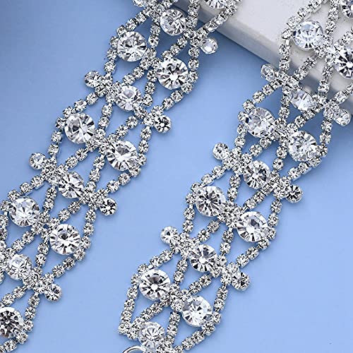 Azaleas Cintura in lega d'argento, con glitter per abito da sposa e da sera (S414-S), Argento-bianco, Taglia unica