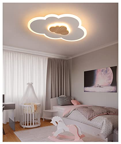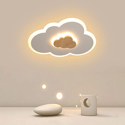 Azanaz Lampada da soffitto a LED Plafoniera a nuvola Luce calda in legno (3000K) 400mm 20W Luce a nuvola Plafoniera moderna a LED Camera dei bambini Camera dei bambini Camera da letto Soggiorno