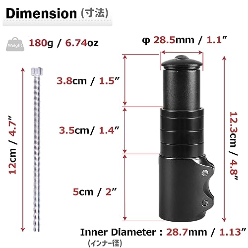 Azarxis Prolunga Manubrio MTB Rialzo Manubrio Bici da Corsa Attacco Manubrio MTB Stelo Forcella Prolunga per Bici (Nero Unito, 12.3)