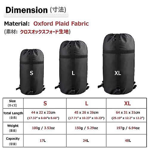 DIMENSIONE RIDOTTO: Il sacco di compressione è composto da un sacco, da le cinghie con fibbie, il volume del sacco può essere ridotto per mezzo di stringere la corda