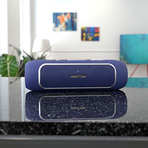 AZATOM Storm - Potente speaker Portatile con Bluetooth 4.0 e NFC - Doppi Trasduttori - Bassi Woofer Gemelli - 24W - 24 ore di autonomia - Blu