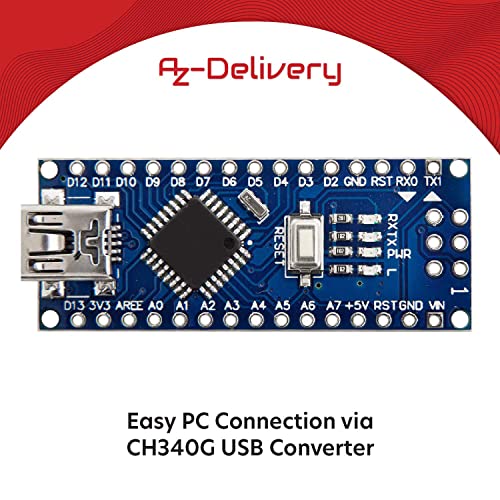 AZDelivery AZ-NanoV3-Board Mini USB Board ATmega328 5V 16MHz CH340 ATmega328P Micro Controller, CH340G sostituisce FT232RL Incluso E-Book!