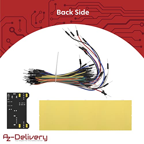 AZDelivery MB 102 Breadboard Kit - 830 Breadboard, Adattatore di Alimentazione 3,3V 5V, 65pcs Jumpers compatibile con Arduino incluso un E-Book!