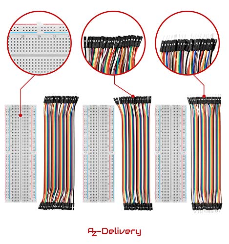 AZDelivery 3 x Breadboard Kit - Jumper Wire Cavetti Kit + 3 x Breadboard MB102 830 compatibile con Arduino incluso un E-Book!