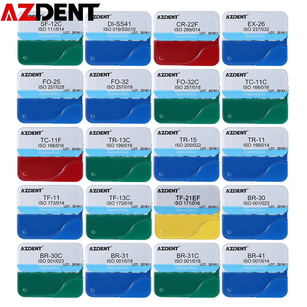 AZDENT 100pcs/20Boxes Dental Diamond Burs Drill for Teeth Porcelain Ceramics Composite Polishing High Speed Handpiece Dia.1.6mm