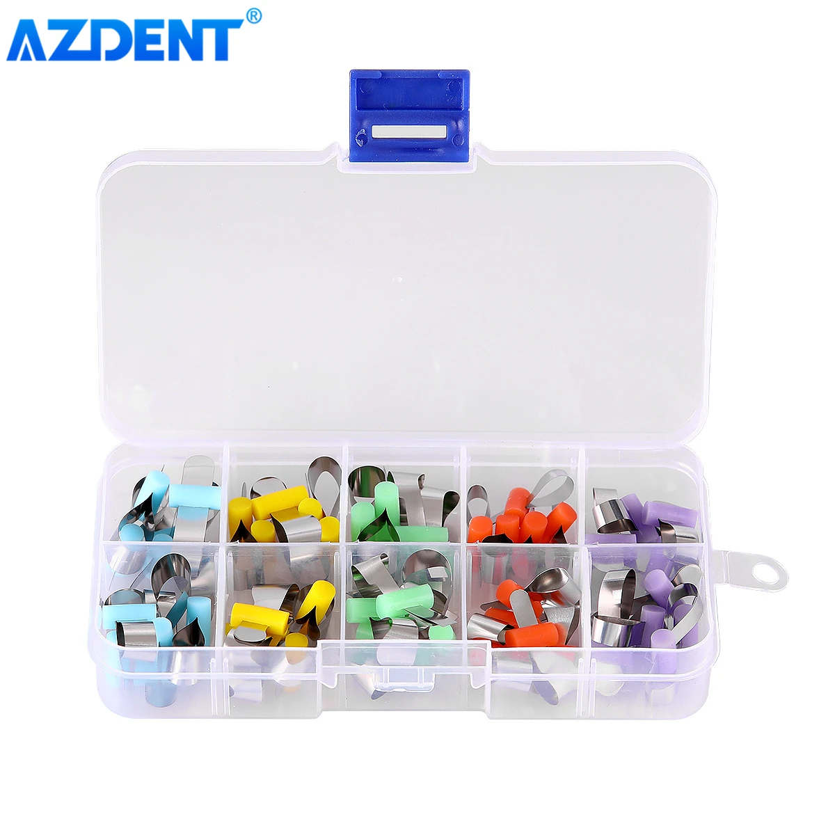 AZDENT 50pcs/Box Dental Metal Matrices Bands Retainerless Automatrix with Locker Forming Sheet Orthodontic Sectional Contoured