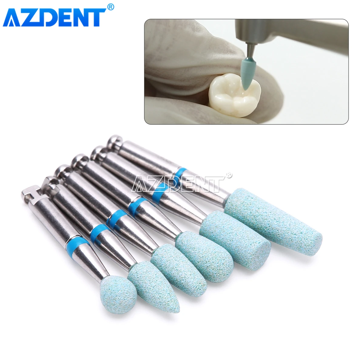 AZDENT Dental Ceramic Bonded Grinder with Diamond Polishing Head Polisher Zirconia Porcelain Coarse for RA 2.35mm Contra Angle