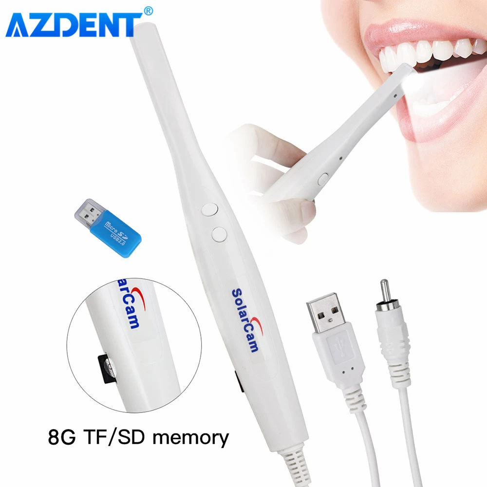 AZDENT Dental Digital Oral Endoscope Intraoral Camera 6/8 White Cold LED Light High Resolution Latest CMOS 1/4 Sensor USB/TV/AV