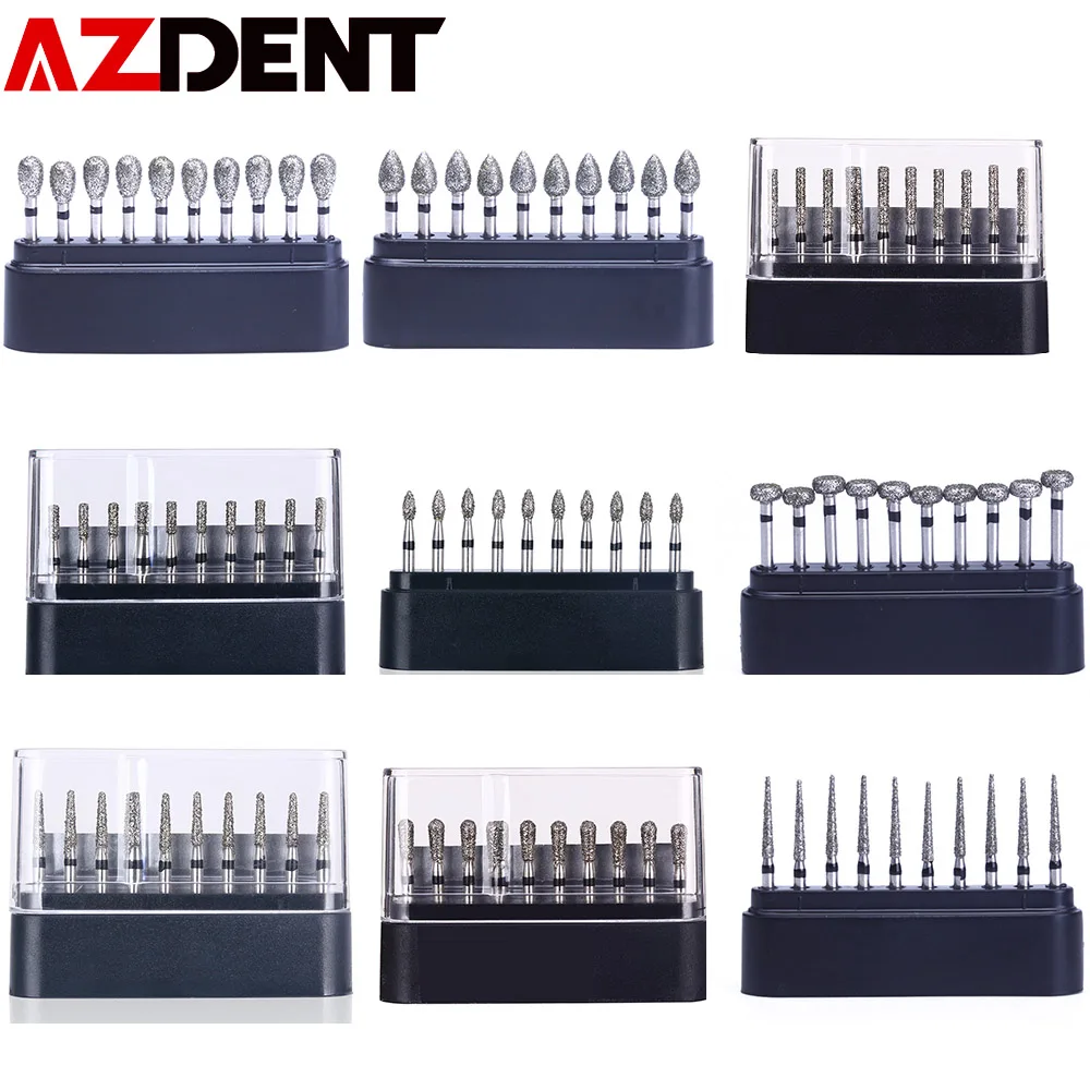 AZDENT 10 pcs/set Dia.1.6mm Dental Diamond Burs Drills High Speed Handpiece Polishing Whitening Product