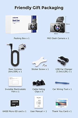 SD Card Included and Worry-Free Aftersales:We prepare dedicated 32GB SD card for each M63 car dash cam. Every customer is fully covered by 1-YEAR WARRANTY. If you're having any doubts, it comes with a Full Refund within 30 DAYS. As always