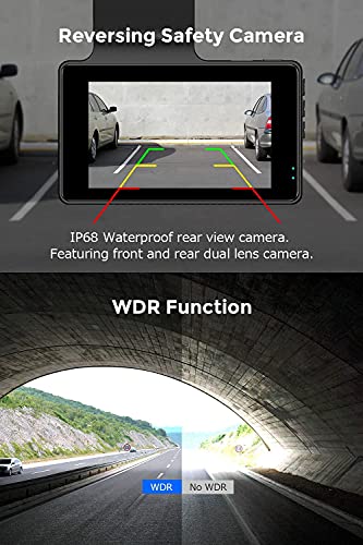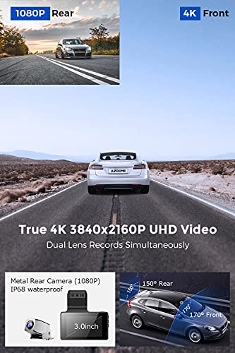 AZDOME 4K WiFi GPS Car Dash Cam, Dual Lens with 3" IPS UHD 3840x2160P + 1080P IP68 Rear camera, Dashboard Camera Recorder with 150° Wide Angle with Night Vision, WDR, Parking Monitor,Support 128GB Max