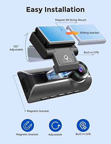 AZDOME 3 Canali Telecamera Per Auto GPS WiFi 2K+1080P+1080P Dash Cam Auto, WDR, Sensore G, Visione Notturna, Schermo da 3,19 Pollici, Registrazione in Loop, Modalità Parcheggio(M550)