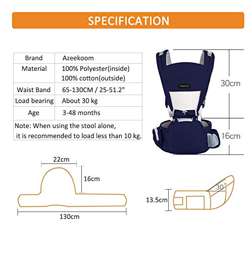 Azeekoom Marsupio Neonati, Porta Bebè Ergonomico con Cinghia di Fissaggio, Bavaglini, Tracolla, Cappuccio della Testa per Appena Nato al Bambino 3-48 Mese (Blu Scuro)