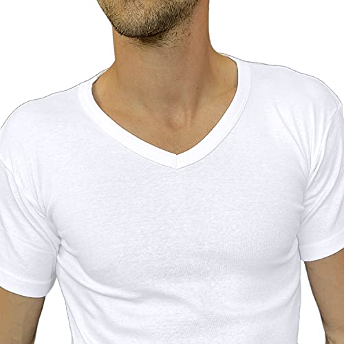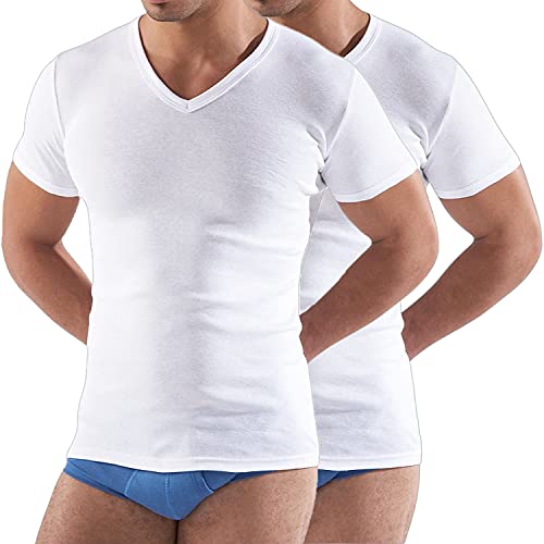 AZERTEX Maglietta Intima Uomo - Scollo a V - Cotone Premium - Confezione da 2 Pezzi, Colore: Bianco