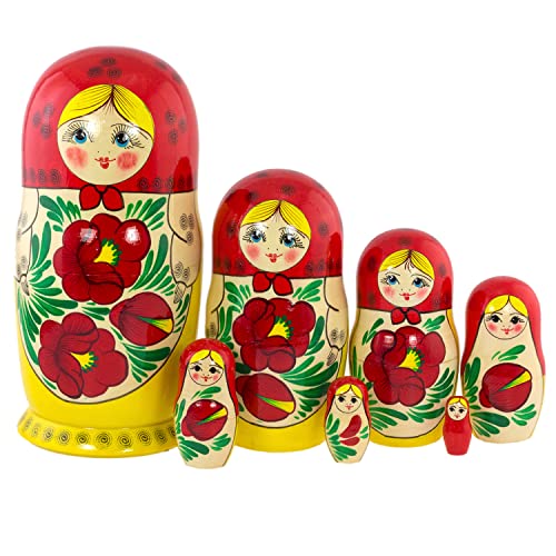 Azhna 7 pz 19 cm Souvenir Matrioska Complementi arredo casa Collezione Stile classico Nesting Doll dipinto a mano Slavo Bambola di legno impilabile bambola (rosso)