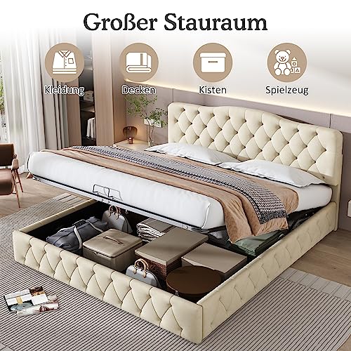 Azkoeesy 180 x 200 cm letto imbottito matrimoniale, con Box Letto, con telaio metallico, rivestimento in velluto (beige)