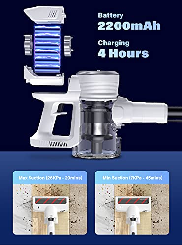 AZMKOO V601 Aspirapolvere Senza Fili, 380W 26Kpa Scopa Elettrica Senza Fili Potente con Motore Brushless, Sistema di Filtraggio a 5 Strati, Batteria Rimovibile 45Mins, Aste Telescopiche, con 3 LED