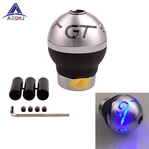 AZQKJ - Pomello universale per leva del cambio, in lega di alluminio, con LED blu, adatto per la maggior parte dei veicoli a trasmissione manuale