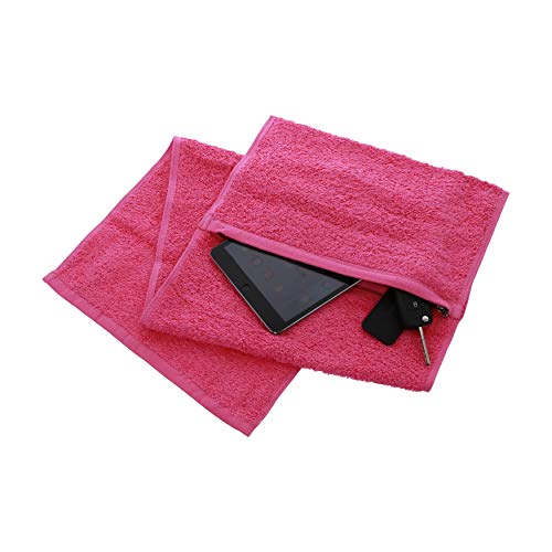 Aztex Asciugamano da Palestra in Cotone Deluxe con Tasca con Cerniera, 30 cm x 90 cm, Rosa